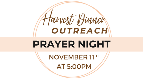Join us November 11th at 5:00pm to pray over The Moose Lodge in preparation for our Harvest Dinner Outreach. We will pray and invite the Holy Spirit to fill the place, and touch and heal the hearts of those who will come.
